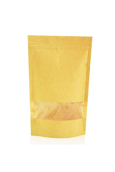 Kraft Paper Pouch With Window, Inner Lamination & Zip-Lock, Extra Large